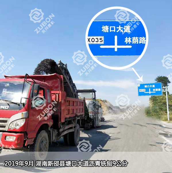湖南新邵縣塘口大道位于邵陽新邵縣塘口村,是今年新修的一條的縣級公路。在新建時,公路底層瀝青鋪設不達標,現需重新銑刨去除原有瀝青層,重新鋪設。