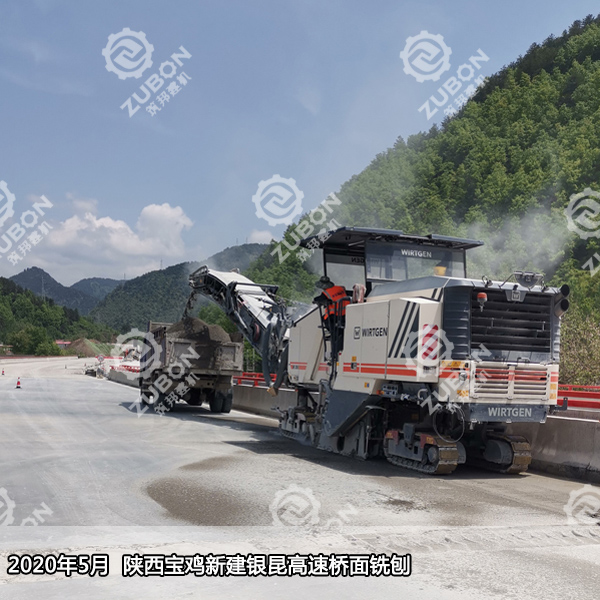 2020年5月新建銀昆高速陜西寶雞段橋面銑刨,此次上陣的是0.5米銑刨機W50H,主要配合大型2米銑刨機完成橋面邊角銑刨。